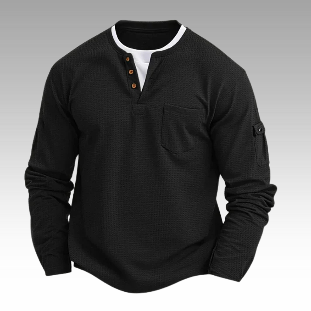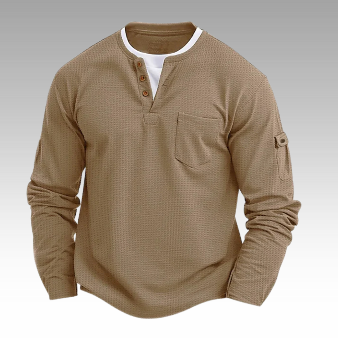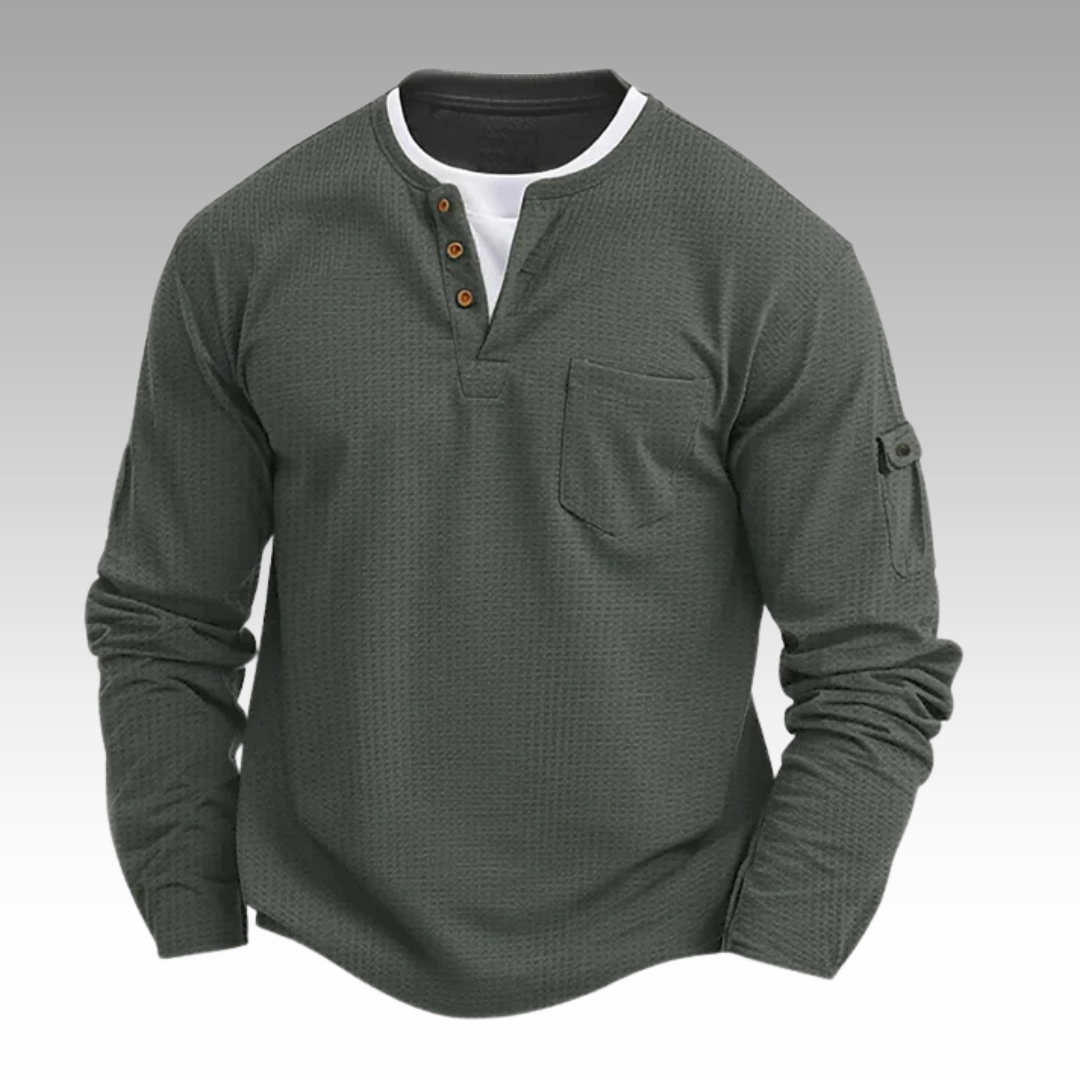 Hergestellt aus einer hochwertigen Baumwollmischung mit dezenter Waffelstruktur – spendet genau die richtige Wärme und Belüftung. Ideal für frische Herbstmorgen oder entspannte Tage drinnen.